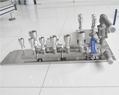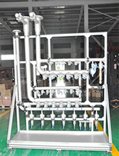 冷却管道整机设备中的分流部分。主要还是由球阀、自闭式快接接头、压力表及端钳快接接头组成。